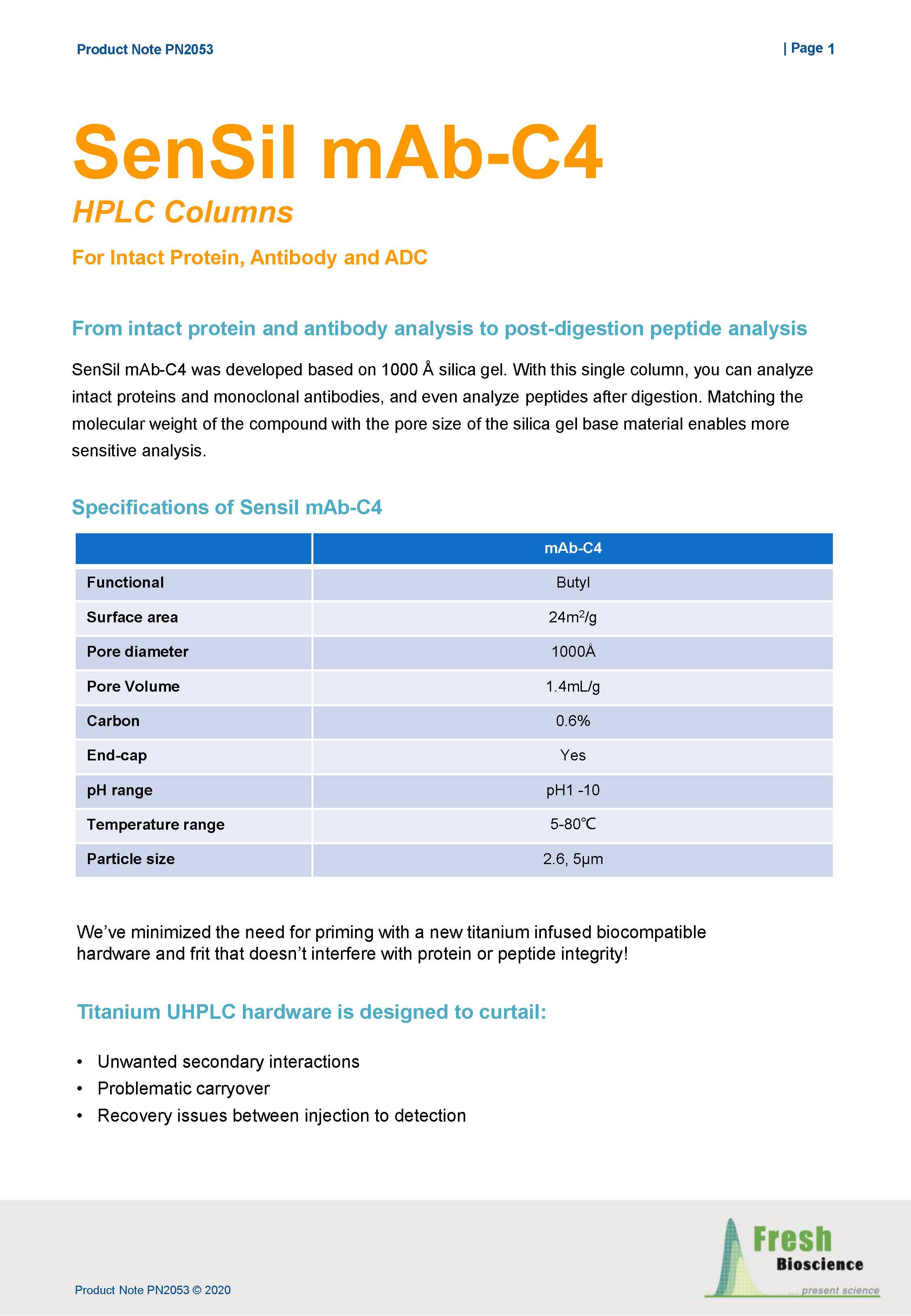 完全生物惰性的1000埃孔徑C4色譜柱,從完整抗體到酶解肽圖分析,加速生物制品研發(fā)過程。